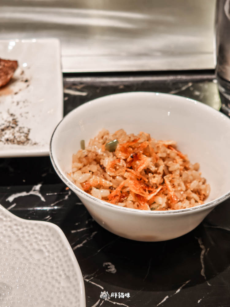 鐵板燒必備: 夏慕尼櫻花蝦炒飯是鐵板燒的靈魂,米飯粒粒分明,鋪滿酥脆的櫻花蝦,香氣十足!