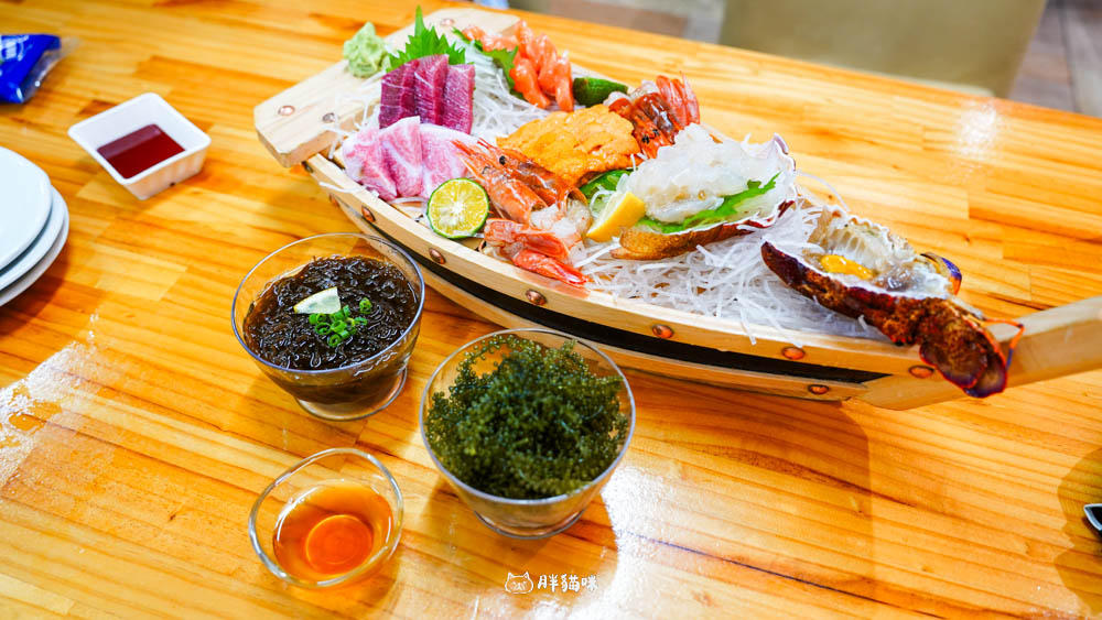 當我們的海鮮送到二樓食堂時,店家貼心地用海鮮船來擺盤,立刻讓整體精緻度升級!還附上了檸檬和金桔。