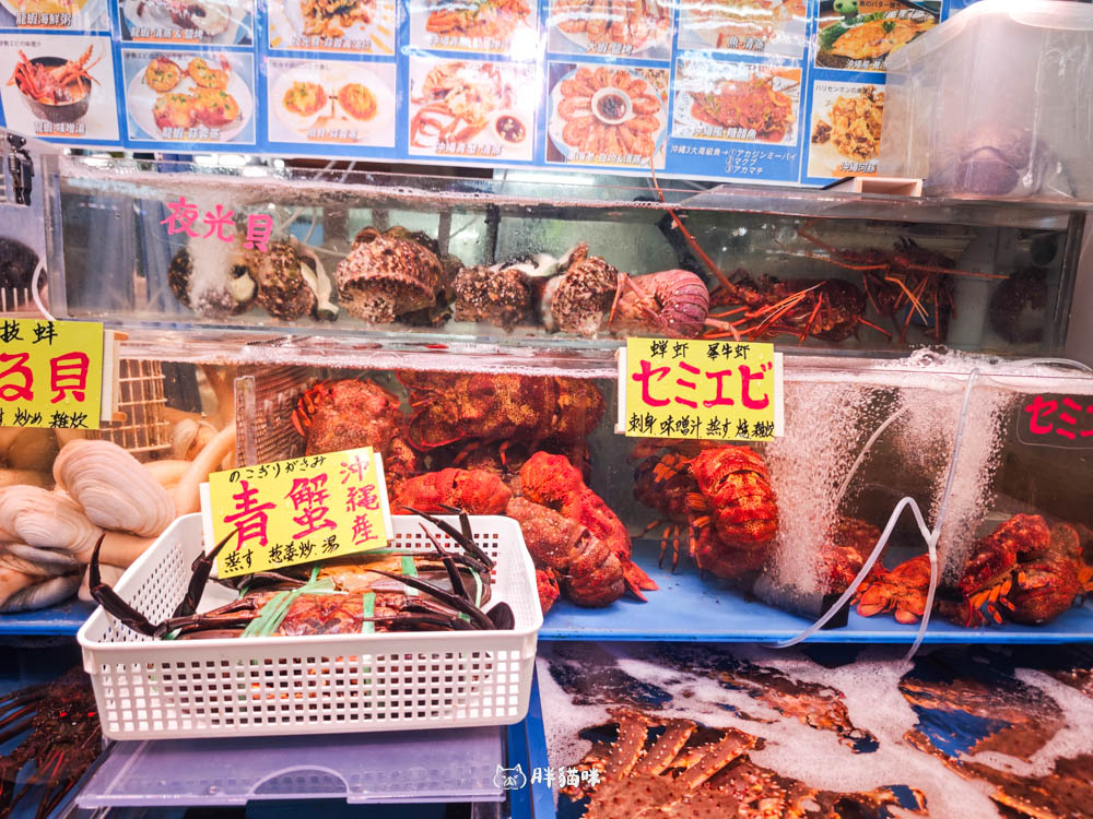 連續幾天被沖繩和牛的油脂香氣包圍後,我的味蕾發出了「想念大海」的呼喚!所以,這次我們直奔傳說中的「沖繩人的廚房」那霸市第一牧志公設市場!這裡的口號就是:新鮮又便宜,胖貓咪實測證明,真的超級划算,人均只要1000出頭台幣。還能吃到頂級的龍蝦沙西米,這趟沖繩絕對要來吃回本。