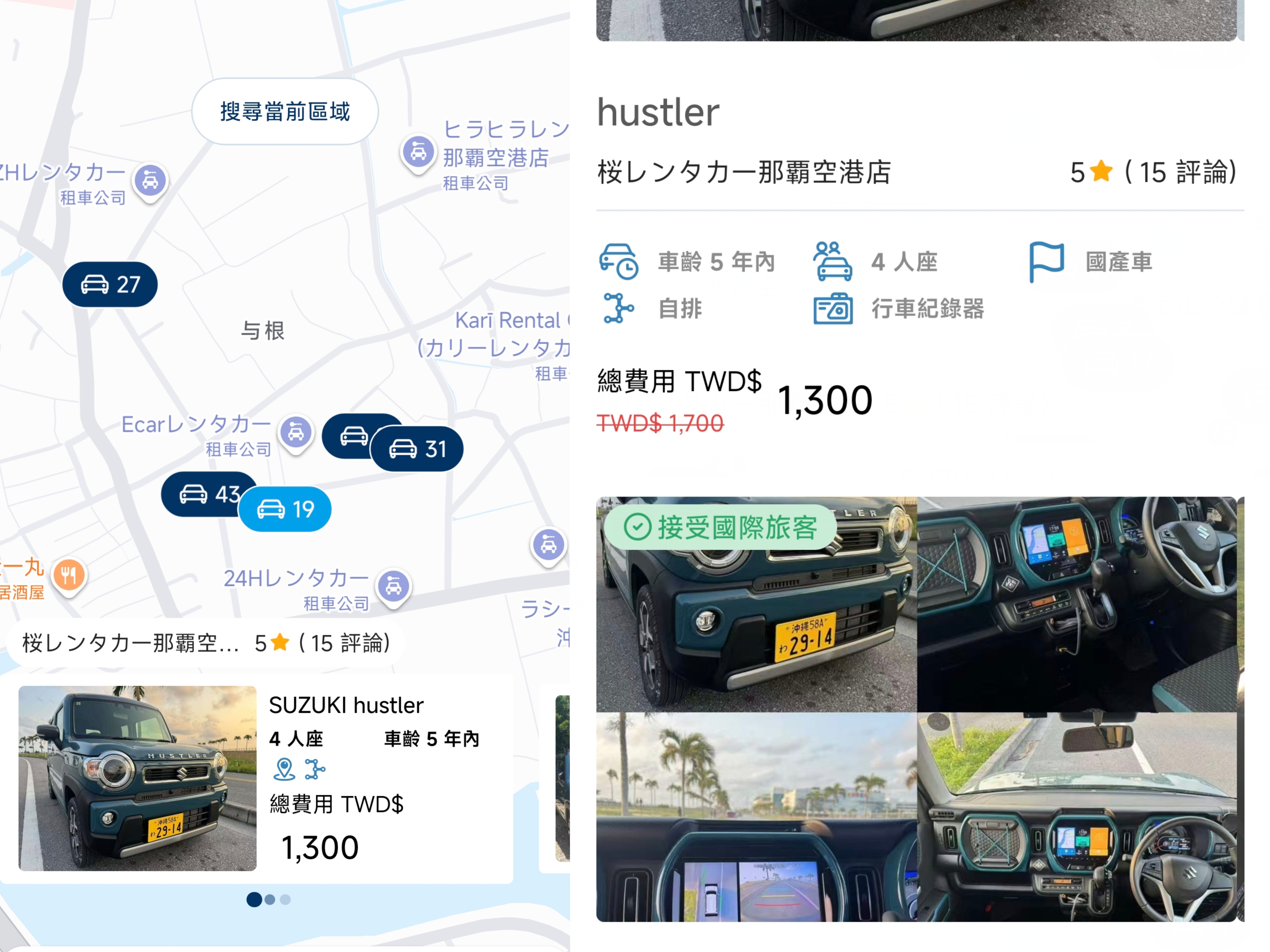 - 平台特性:它彙集了多家租車公司的資源和車款,讓你一站式比較所有選項。大幅簡化了傳統租車的複雜流程,實現沖繩租車的無痛預訂。