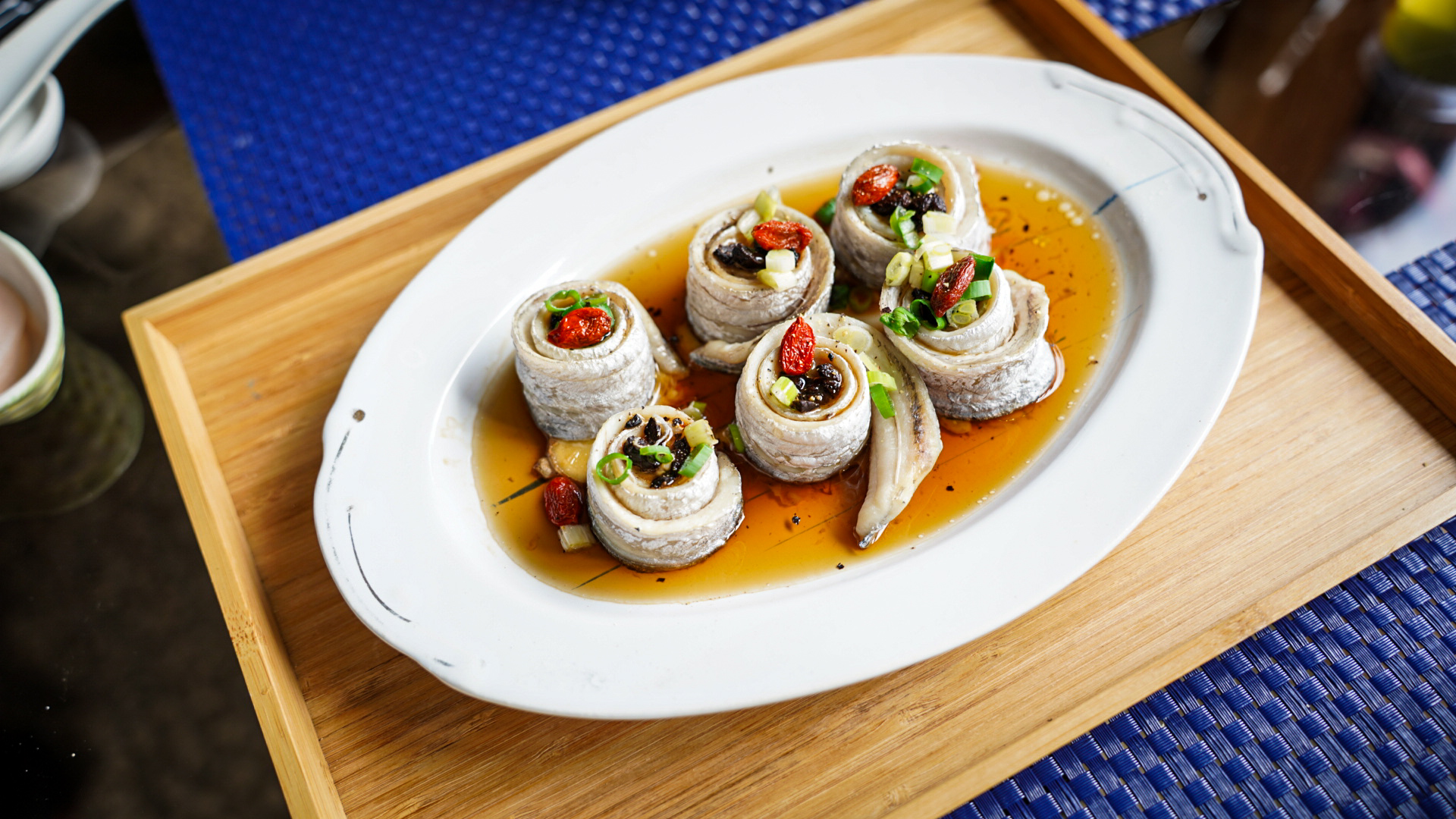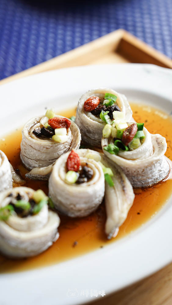 白帶魚肉質細嫩,捲起後更鎖住鮮甜,清蒸保留原汁原味。
