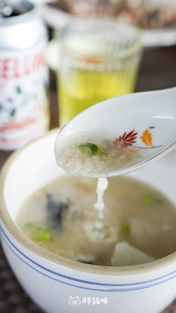 這道粥用烏骨雞、麻油、飛魚卵與鱸魚熬煮,香氣濃郁卻不油膩,是暖胃壓軸。