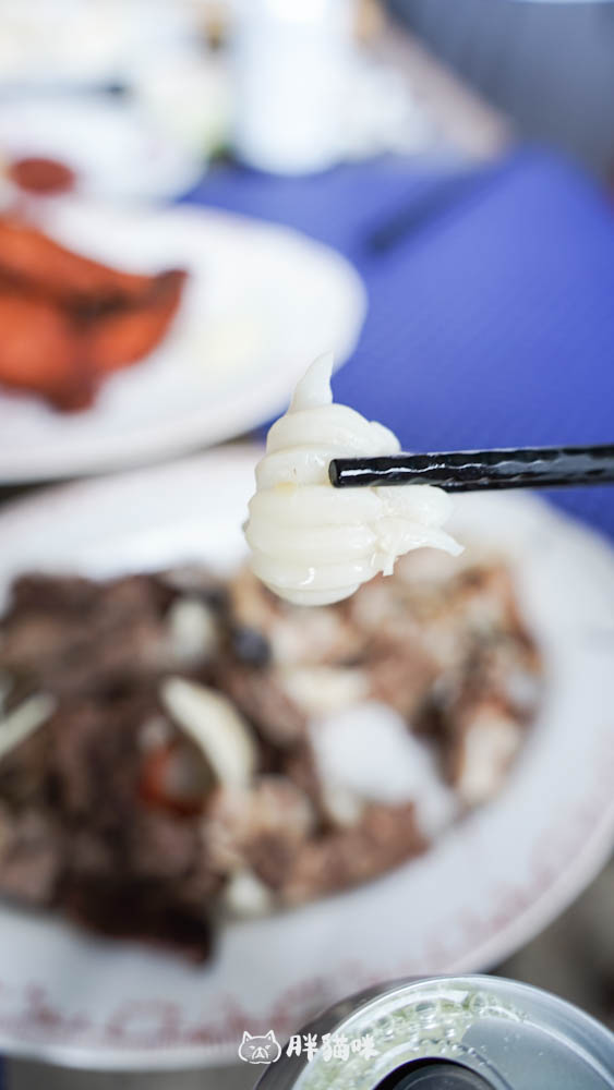 基隆老味道的代表之一,燙好後冰鎮,口感脆嫩、帶著微鹹,沾上蒜蓉醬油更是涮嘴。這時候才知道原來天梯就是豬的牙齦?