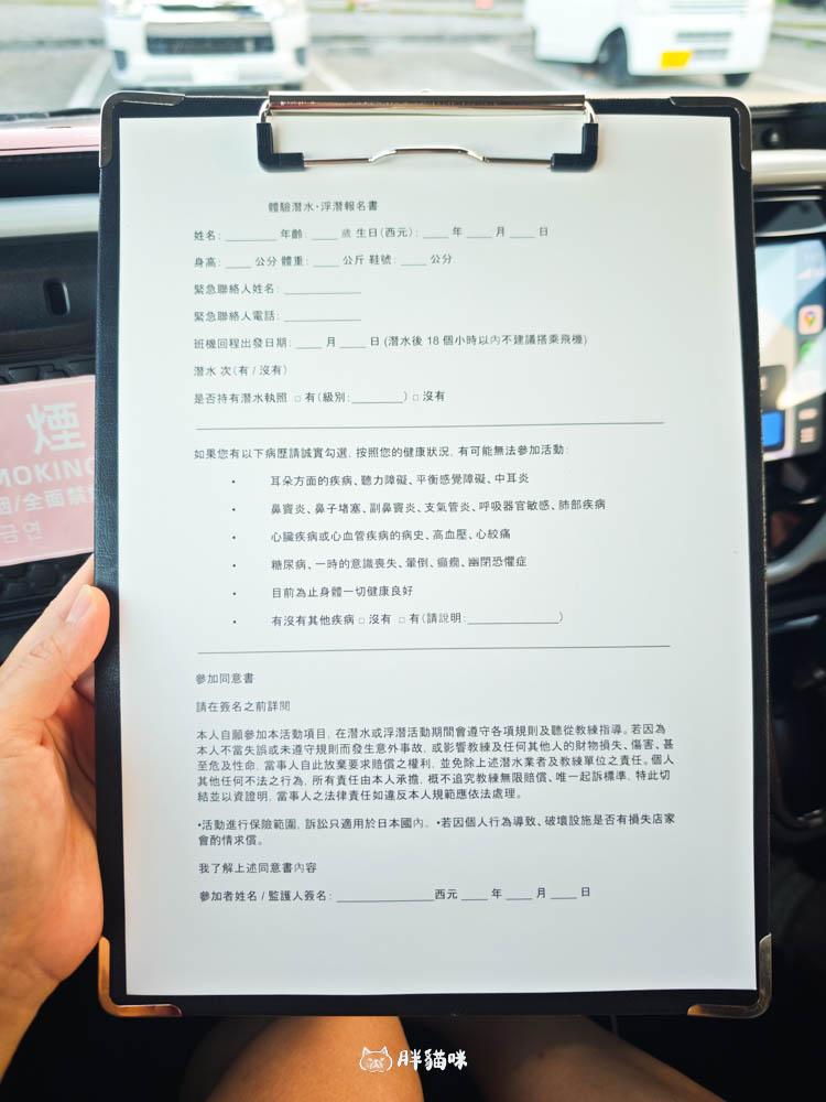 - 健康狀況確認與酒精: 預約前須詳閱健康聲明書(如心臟病、高血壓、懷孕等皆不適合參加)。潛水前一晚請保持充足睡眠,8 小時內切勿飲酒。