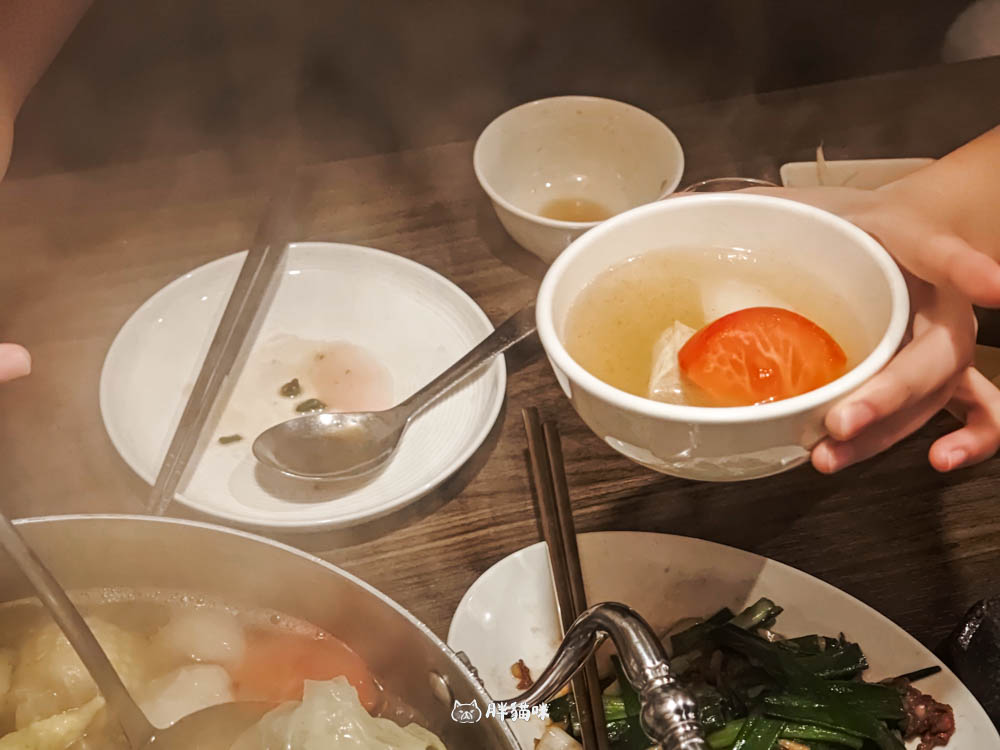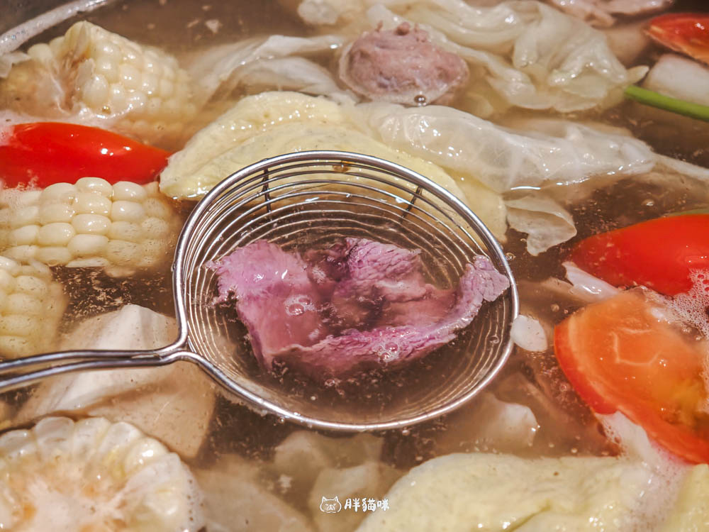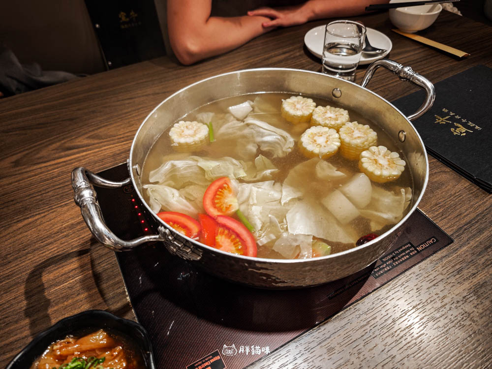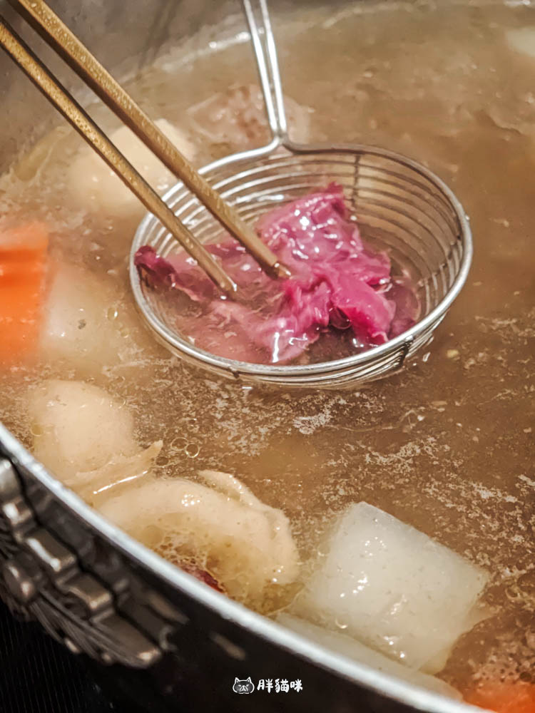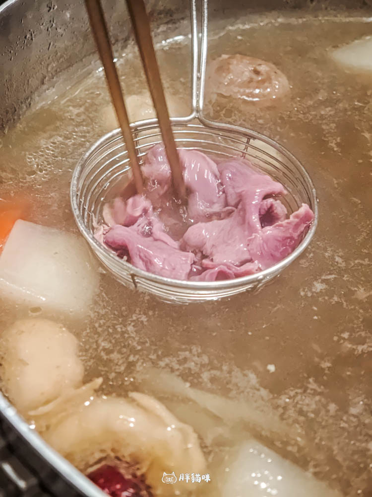 胖貓咪口感心得: 這個湯底喝起來是清澈見底的甘甜,完全不油膩,而且越煮越甜!它完美地襯托了溫體牛的鮮美,絕對不是那種重口味搶戲的湯頭。
