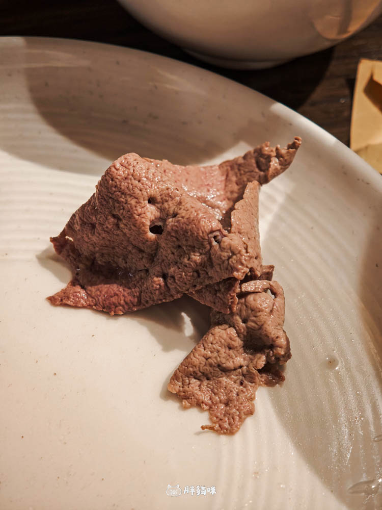 胖貓咪口感心得: 這樣涮出來的溫體牛肉,口感軟嫩到不可思議,帶著一股奶香和牛肉特有的鮮甜,完全不需沾醬就超好吃!